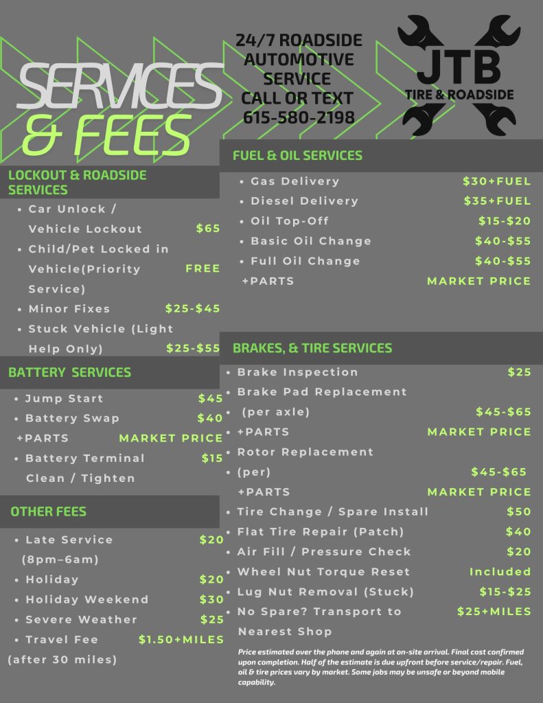 Whether it’s a flat tire, a dead battery, or an unexpected breakdown, we’re here to get you moving again. Fast response, fair pricing, and friendly service—right when you need it most.